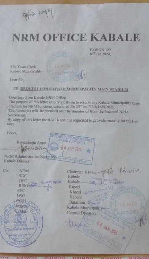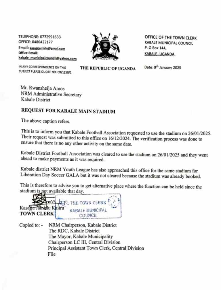 Recently, the Kabale Municipality Authorities penned a letter indicating that KADFA had paid for and booked the stadium ahead of the NRM Office, which subsequently sought permission to use the facility. The Town Clerk advised the NRM Office administration to choose an alternative venue.